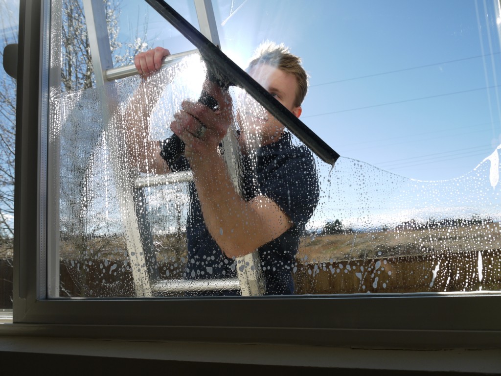 * Čistíme skla, rámy, parapety